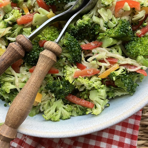 Long time no see… aber heute bin ich wieder da mit einem neuen Rezept, in dem roher Brokkoli verwendet wird. Manch eine(r) wird jetzt denken, daß der schon gekocht so gar nicht geht, was soll das denn erst roh werden, aber ich sage: ausprobieren, der Salat ist knackig-frisch und durch die Kombi mit Apfel und Paprika so richtig lecker.